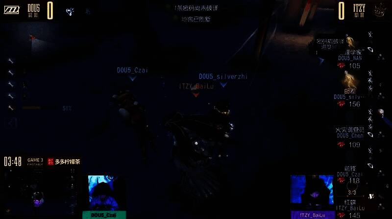 第三天DOU5 vs ITZY第三局上半场,ITZY_BaiLu红蝶开局追击DOU5_sliverzhi邮差,邮差利用大房板子弹射拉开,ITZY_BaiLu知道邮差利用板弹拉点即使用刹那生灭过板也很难拿到这一刀便正常追击,在窗口为躲开送信犬的扑咬向右释放燕尾蝶,并灵活扭掉返回的送信犬,顺利拿到一刀存在感,后续释放燕尾蝶失误,DOU5_sliverzhi被贴近身位后秒放出送信犬,但因为卡模原因身位并未明显拉远,还是被快速击倒。因为前锋携带飞轮效应,且外围有心理学家的移情支援,DOU5_Czai的前锋可以放心干扰监管者挂人,ITZY_BaiLu也不得已将大部分精力分到前锋身上,而后前锋远距离拉球将红蝶撞晕,DOU5_Czai的操作成功将邮差的绝处逢生拖出并将密码机进度拖至将近三台。心理学家前来救人,让邮差利用化险为夷拉离大房遗产机。虽然大门双板也是遗产机,但ITZY_BaiLu明显有所察觉其即将破译完成,还是选择将邮差挂回大房,DOU5_Czai再一次出其不意的偷袭将邮差从气球上救下,并成功抗刀,火灾调查员也前来支援,两人保护邮差将密码成功拖至压好。开门战ITZY_BaiLu击倒前锋,底牌切传送管月亮门,心理学家则迂回救下前锋从大门逃脱,DOU5_sliverzhi虽然在小木屋被ITZY_BaiLu发现,但抗住了压力,最后成功地窖逃生,从最开始的密码机进度严重不够,到开门战四人四跑!这就是第五人格游戏展现出团队合作的魅力!