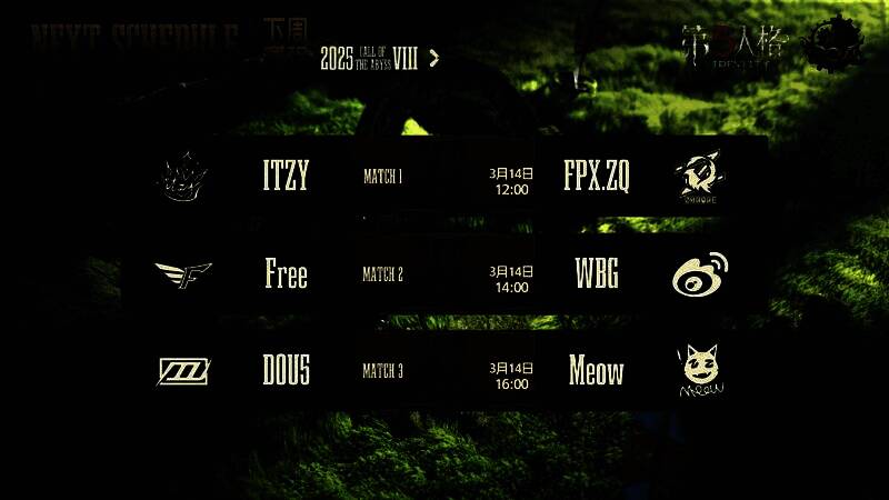 下周,淘汰机制依旧残酷,战况进一步升级,WBG战队在本周失利的情况下能否经过一周的反省复盘后打一个漂亮仗?FPX.ZQ又要面对老对手ITZY,FPX.ZQ求生者能否继续保持这种状态?面对体系完备的职业队,各个民间队能否力抗强敌,继续自己的深渊追梦之旅?敬请在3月14日中午12点锁定第五人格赛事官方直播间,关注更多精彩比赛,为自己喜爱的队伍加油助威,我们不见不散。