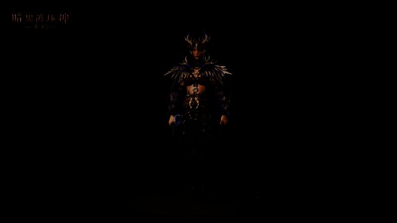 精心雕琢的骨刺肩甲,仿佛能破开浓重的黑夜,为时装增添了一抹不羁色彩,显露猎手的冷酷与决绝。腰间和胸口镶嵌的宝石隐约闪烁着光泽,宛如其收藏的战利品,无声颂唱着象征胜利的赞歌。