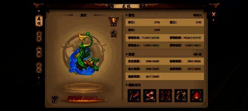 当少侠将龙纹启灵到达嘲风之后,即可解锁第五龙元位。其核心机制与同前四个龙元位一模一样。