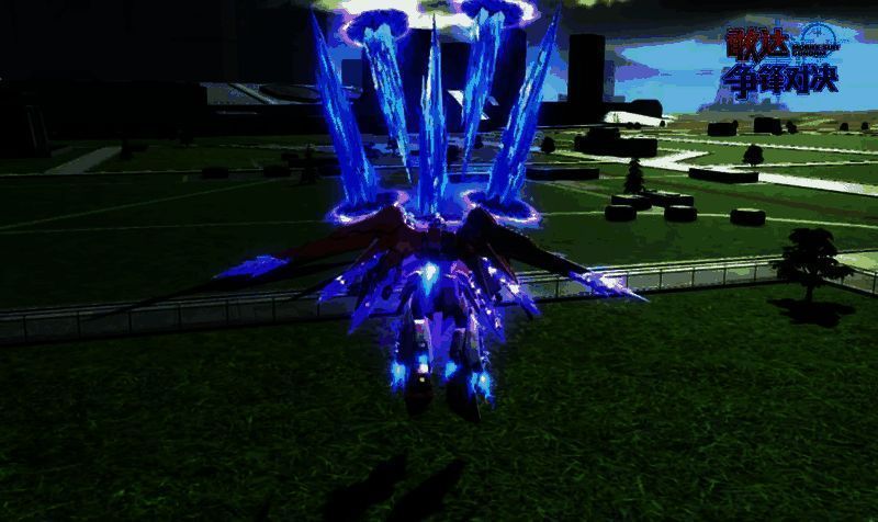 【必杀技】按下必杀键。快速上升至空中并进入结晶形态,召唤来自其他次元的光束武器对目标进行照射攻击,命中地面或障碍物会产生暴风。
