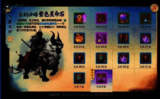 与此同时,参与每日签到活动“星官点卯”活动可领取好礼,连续签到14天更可获得终极大奖——“自选紫色星命石”!