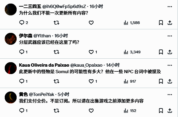 也有玩家抱怨道:“我们是付了全价买的,不是订阅用户。所以在售卖游戏之前,请先加入更多内容。”