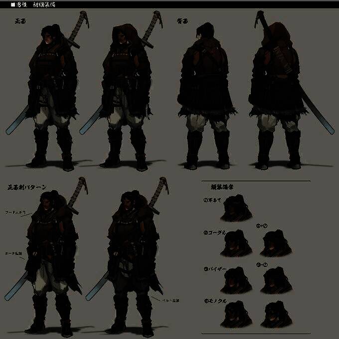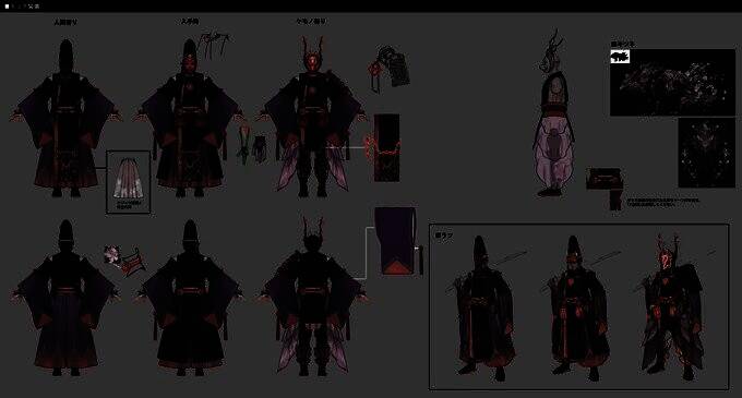 最终确定了以基础的和风装束和武具为设定进行设计。