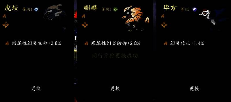 举个例子,假如大家玩的是炎属性的阵容,后羿、金乌、旱魃这种,那么就可以选择带有炎属性幻灵加成的异兽;