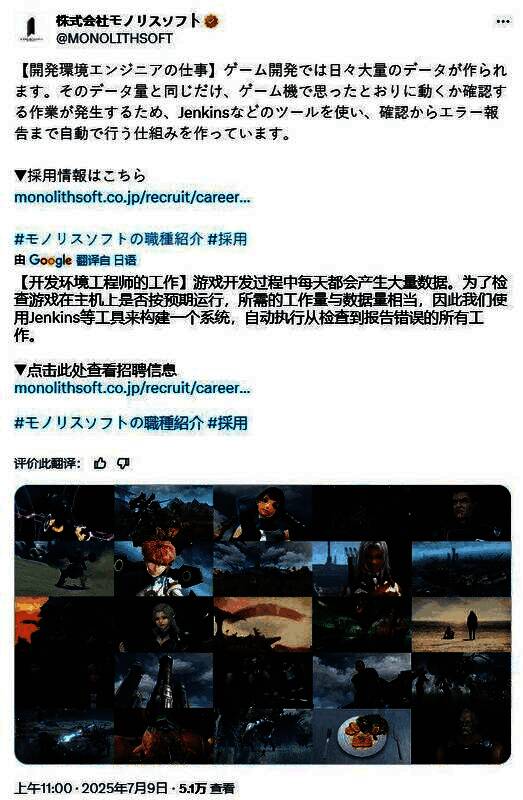 爆料称《异度神剑》系列开发商Monolith Soft目前正在为任天堂Switch2开发一款大型角色扮演游戏。Monolith Soft东京工作室正在招聘开发人员,为Switch2平台打造一款大型RPG。该工作室近期在社交平台上详细介绍了各个职位的工作内容,旨在吸引新鲜血液加入。
