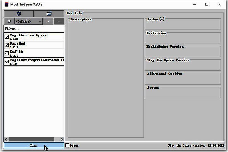 启动的时候,需要把4个mod都打钩,点Play启动。