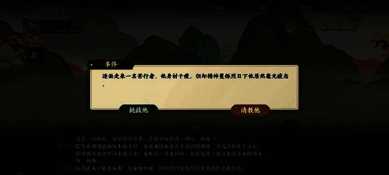 指间山海游戏中山海传奇后羿怎么通关?本篇给大家带来了《指间山海》山海传奇后羿篇攻略,下面的贴出的选项截图都是随机出现的,但是看见迎战和逃跑的选择统一选择迎战 ,可以劝解的就选择劝解。