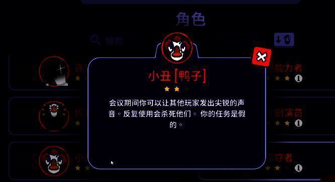 在鹅鸭杀这个游戏里,可以选择的角色非常多,每一个都有自身独特的设定,行为策略包括注意事项也都不同,小丑是游戏里的一个中立角色,和其他好人阵营或者坏人阵营是互相区分的,想要获得胜利,依靠的不是另外两个阵营中,其中一个阵营全军覆没,而是需要在会议阶段被其他玩家淘汰,如果一旦被淘汰就能直接获胜。