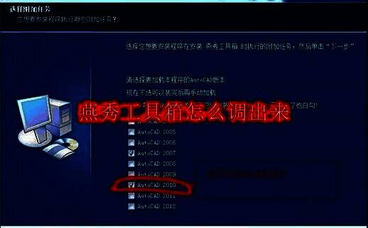 1.小编以cad2010版本为例,首先确定在安装燕秀工具箱时有勾选cad2010版本,如图