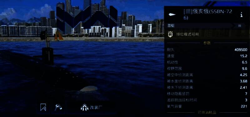 很适合萌新使用的潜艇,伤害不俗且各方面的属性都不低,在任何地图里都有着极佳的适应能力,也可直接放弃潜射专门在水面配合队友用导弹打击对方。