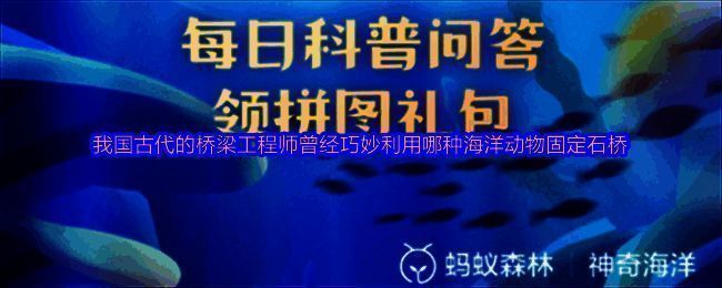 支付宝蚂蚁森林神奇海洋2025年7月9日问题已经更新,今日题目是:我国古代的桥梁工程师曾经巧妙利用哪种海洋动物固定石桥?正确答案是:【牡蛎】。建成于北宋时期的洛阳桥是我国历史上第一座跨海梁式石桥,桥梁工程师们为此首创了“养蛎固基”的方法。