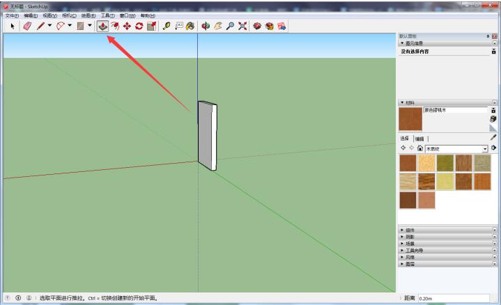 接着使用鼠标中间将图稍微的旋转一下,然后在使用推拉工具,向后拉一定的厚度。