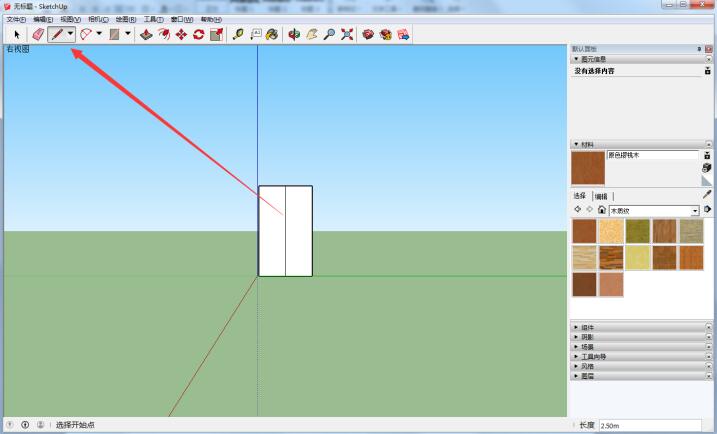 首先打开草图大师,然后切换到右视图。(切换到右视图是为了方便制作和观看)