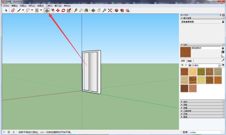 然后在切换回右视图,然后点击直线工具,在窗户模型的中心画一条直线。