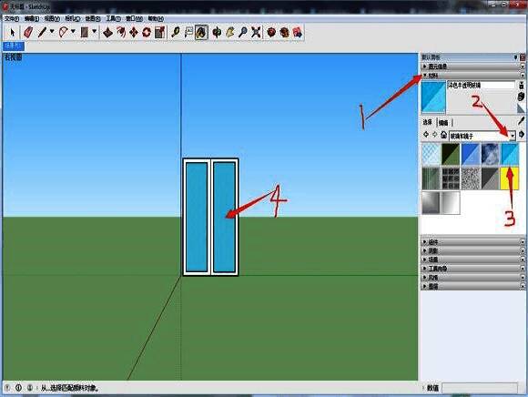 先点击右边的材质,在点击下拉菜单选择玻璃和镜子,然后选择半透明玻璃材质,最后赋在两扇门上。