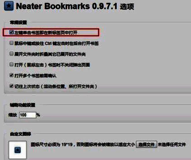 勾选这个选项,"左键单击书签即在新标签页中打开"