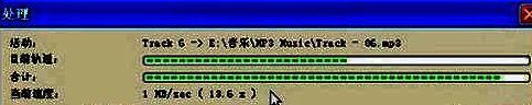 第5步,在打开的“处理”对话框中,Nero Burning Rom开始保存选中的音轨,并自动转换成MP3文件。