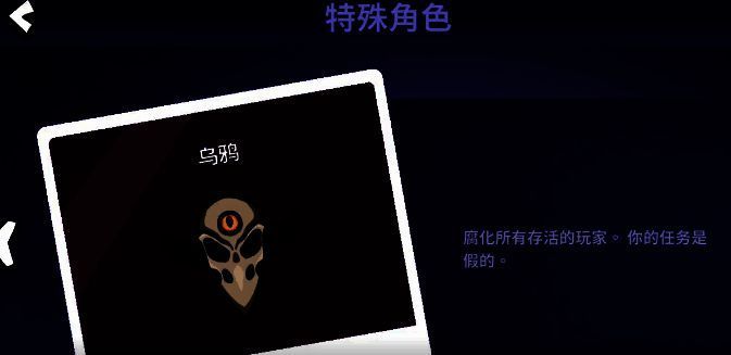 乌鸦是一个中立阵营的角色,主要的技能就是通过孵化的方式会影响到附近的玩家。一旦完成对于所有存活玩家的孵化之后,马上就会变成乌鸦本体,接着就会进入到乌鸦时间内。