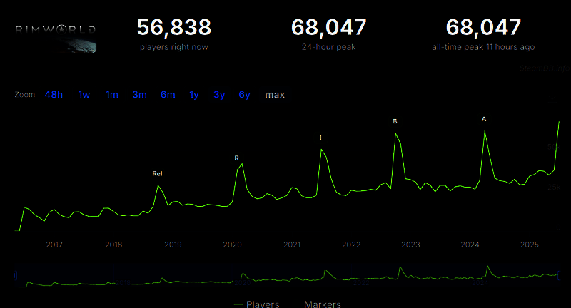 Ludeon Studios工作室旗下收获好评如潮经典游戏《边缘世界》大型DLC奥德赛以及更新1.6同时上线,再度引发好评游玩,Steam同时在线玩家超过6.8万,创造历史新纪录。