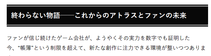 ·Altus社表示,自从合并后一直坚持开发固有的精品IP,包括《女神异闻录》以及《女神转生》,现在也在助力新IP,包括《暗喻幻想》等,需要注意的是,这些新IP并不是为了收益,而是与粉丝对话的成果。