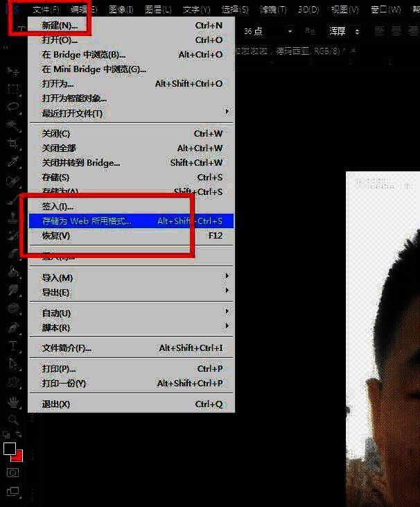 然后选择左上角的文件,点击“存储为web所用格式”。