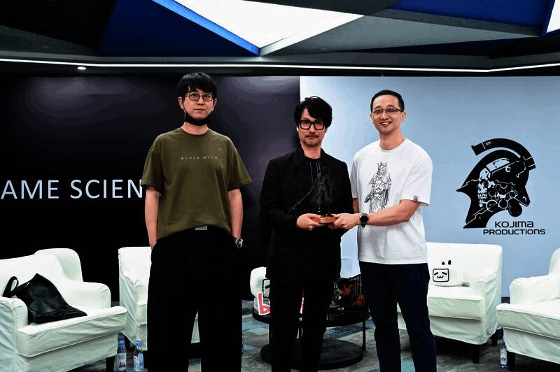 日本游戏制作人小岛秀夫及其团队为出席《死亡搁浅2:冥滩之上》BW特别舞台活动,来到了中国上海。期间小岛与《黑神话:悟空》制作人冯骥、美术总监杨奇见面,双方互换礼品并合影留念。