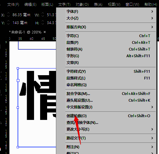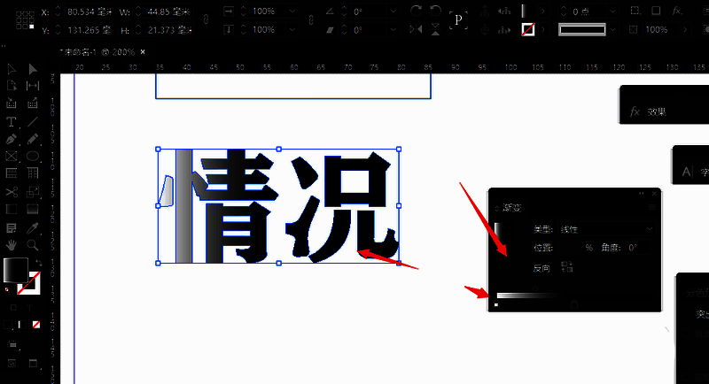 3.接着,先将文字转曲,然后点击左侧的渐变工具
