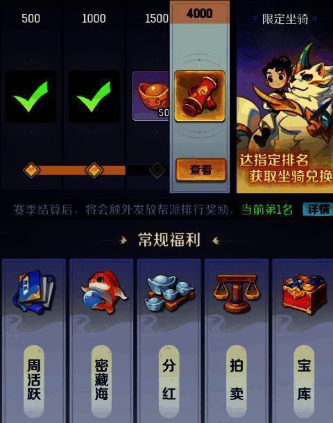 当完成帮派竞赛之后,能够获得极其丰富的物资和资源,帮派竞赛主要的特色由多种不同板块组合而成,比如周活跃度以及宝库,帮派日常任务,帮派战争等等。其中帮派竞赛每个赛季都会持续一个月,赛季结算的过程当中,会按照个人战功排行发放个人奖励。