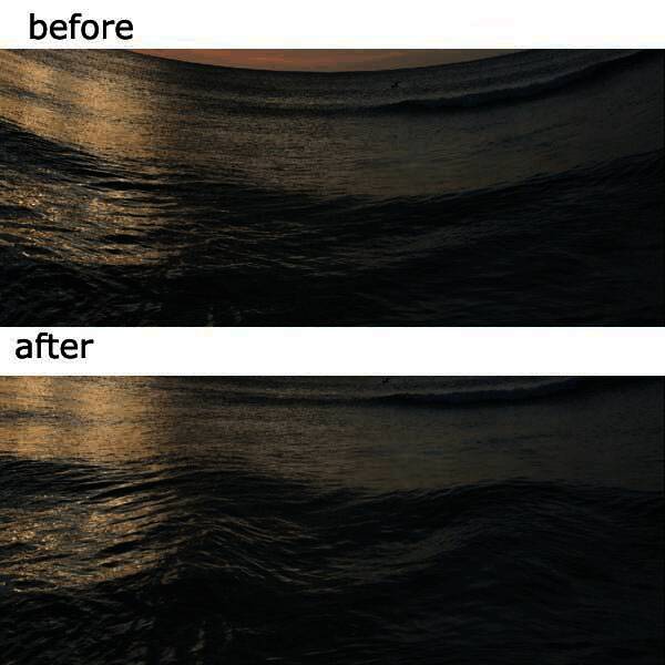 由于变形工具使图像平面的外观,我们需要做一些波液化(滤镜>液化)。使用下面的图片作为参考波看起来应该如何操作与液化后。