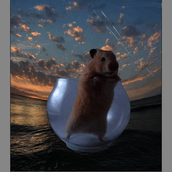 剪下有趣的仓鼠用钢笔工具,并将其放置在中间的海洋。