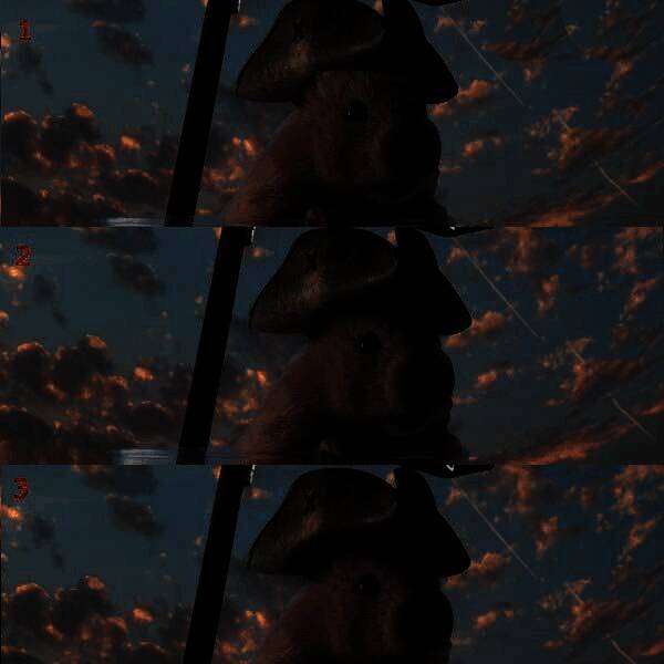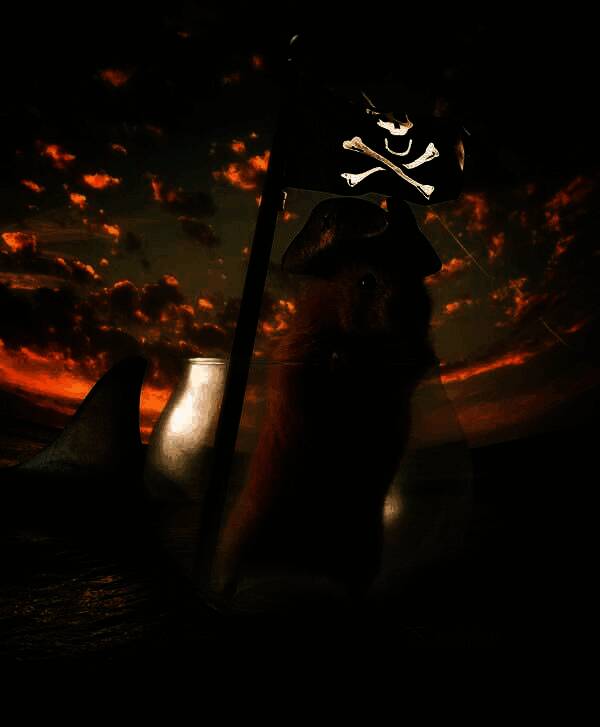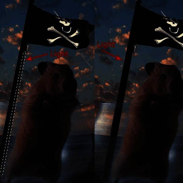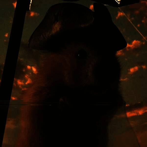 把海盗帽和安排的大小,以适应头部的仓鼠(1)。一个新层,然后在帽子下一层,画一些阴影的头的仓鼠用柔软的边缘和透明度低的黑色画笔(2)。一个新层,然后在前面的帽子层画一些阴影的帽子,再次使用一个低透明度和软边刷(3)。