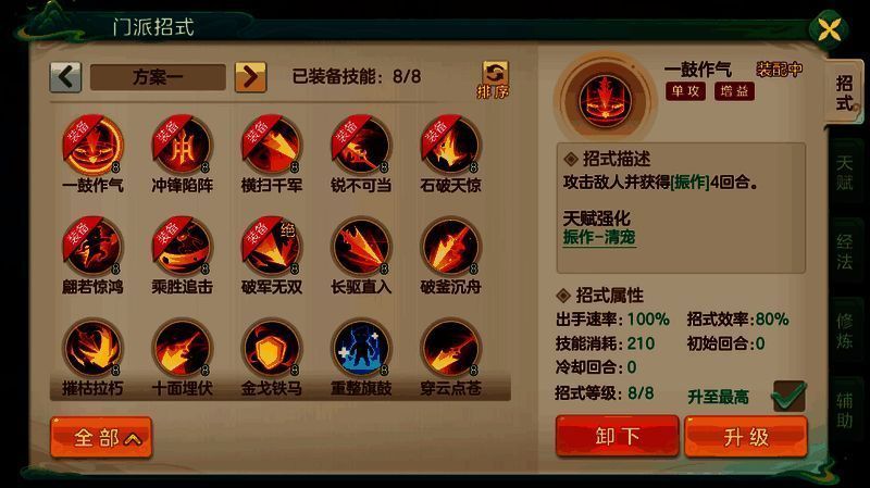 流派招式:摧枯拉朽、长驱直入、石破天惊、乘胜追击