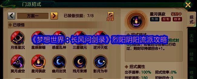 《梦想世界:长风问剑录》烈阳阴阳流派攻略