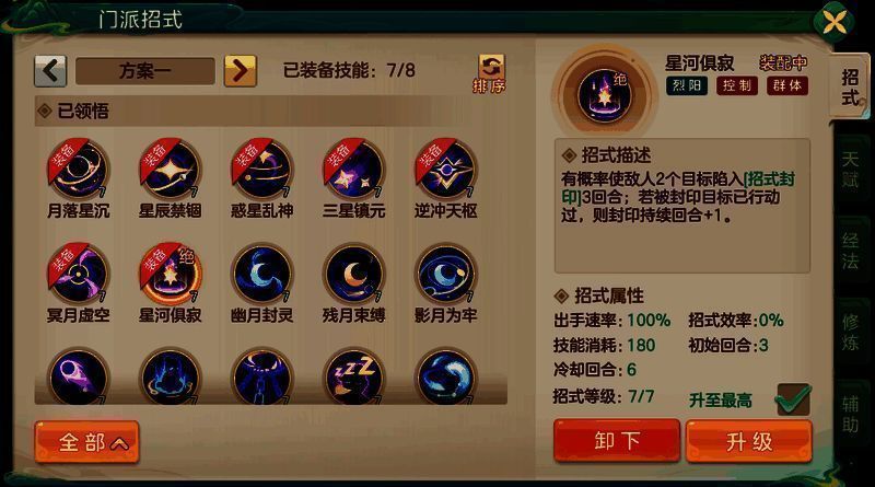 流派招式:星辰禁锢、三星镇元、逆冲天枢、斗转星移