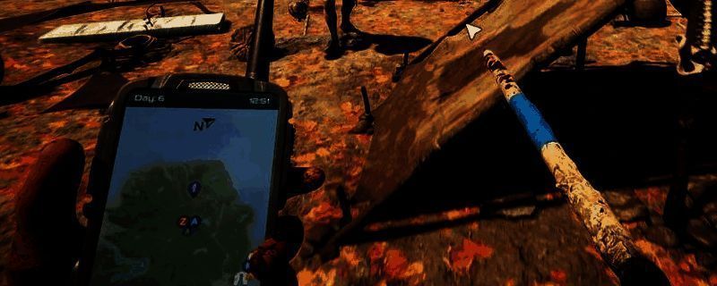 《森林之子》这款游戏对新手来说并不算友好,尤其是单人游玩的玩家,当你只有一个人玩的时候游戏真是恐怖游戏,所以也就需要一些小技巧,首先是GPS标记位置,从背包里拿出木棍,对准地面,按一下鼠标右键,如果地上出现圆形标记,那么你就可以按鼠标左键把木棍插在地上。