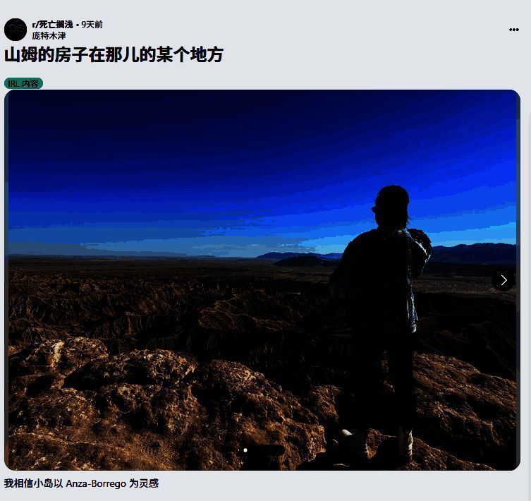 Anza-Borrego沙漠州立公园位于美国加利福尼亚州南部,与索诺兰沙漠接壤,该沙漠横跨美国西南部与墨西哥西北部,也是许多玩家现实生活中的居住区域。随着《死亡搁浅2》影像逼真度提升至近似实拍水平,此次“误认”现象也再次引发了关于游戏画面与现实风景界限模糊的讨论。