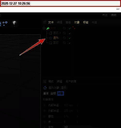 同样把星形对象拉到放样对象的下级中,并且要在两个圆环对象的中间位置上。
