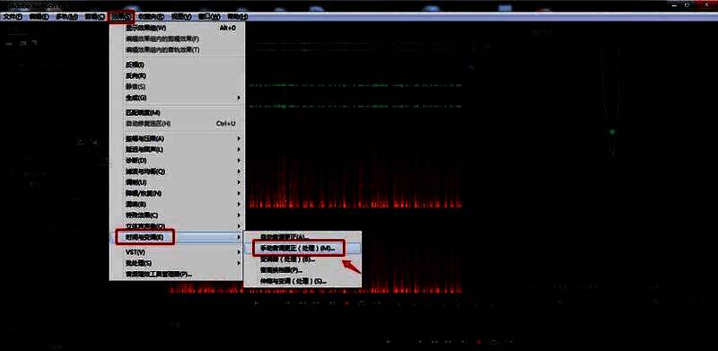 4、点击顶部工具栏中的“效果”——“时间与变调”——“手动音调更正(处理)”。
