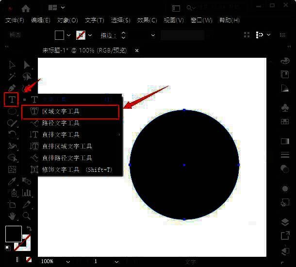 接着,我们在文字工具中找到【区域文字工具】,如图所示。