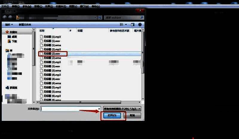 2、在弹出的导入文件窗口中,选择需要的音频素材,点击打开。