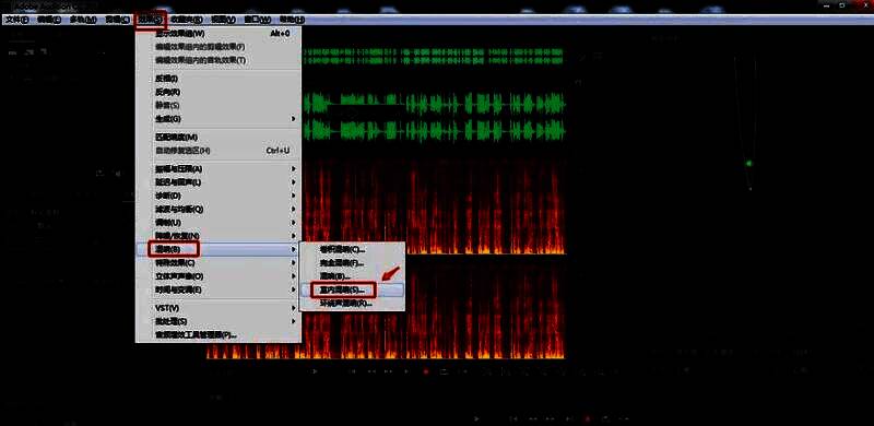 4、点击顶部工具栏中的“效果”——“混响”——“室内混响”。