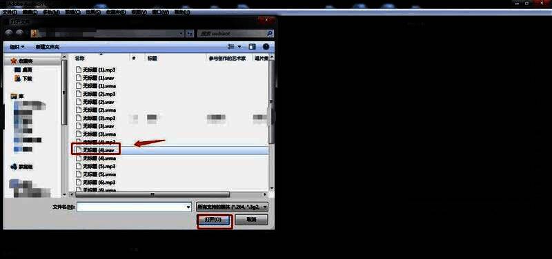 2、在弹出的导入文件窗口中,选择需要的音频素材文件,然后点击打开。