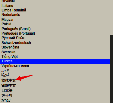 4、最后,在下拉菜单中就可以找到简体中文了