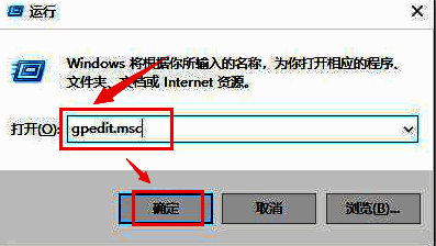 2.然后,输入gpedit.msc字样后,点击确定按钮