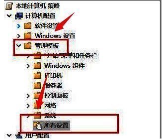 3.接着,打开计算机配置菜单下的管理模板栏目,点击所有设置文件