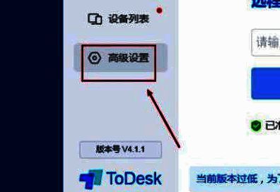 1.首先,打开ToDesk界面后,点击左侧的高级设置菜单