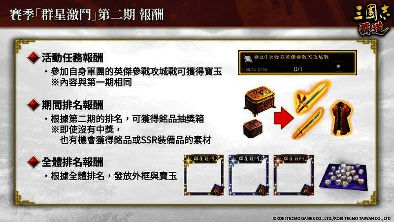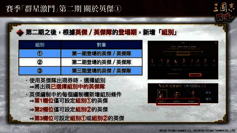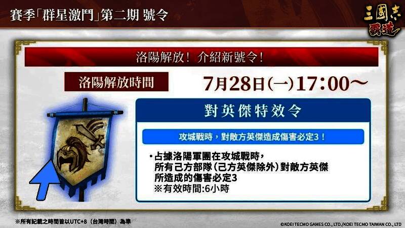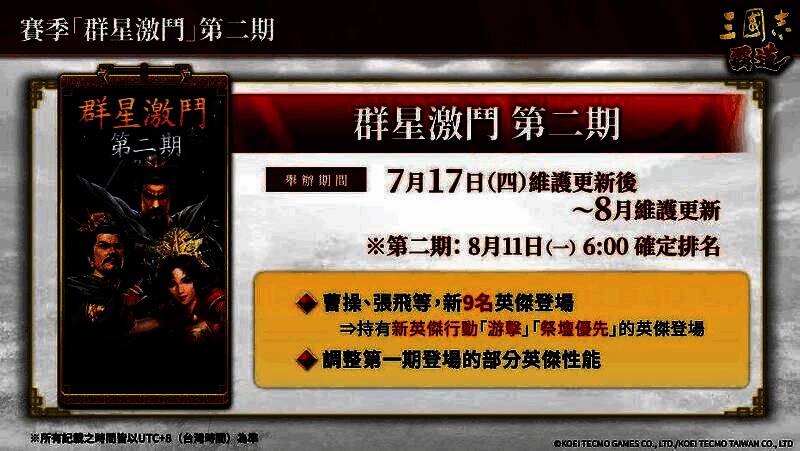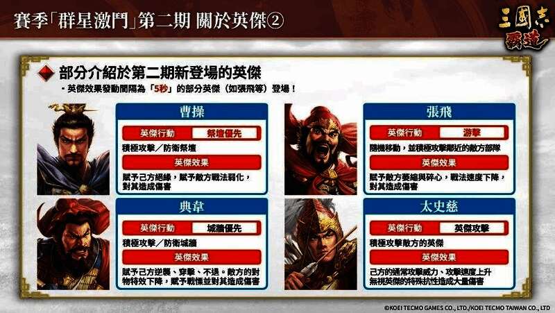 新赛季「群星激斗」第二期开战。曹操、刘备等共9名英杰全新登场,和强力的英杰们一同问鼎军团霸者的顶点吧!