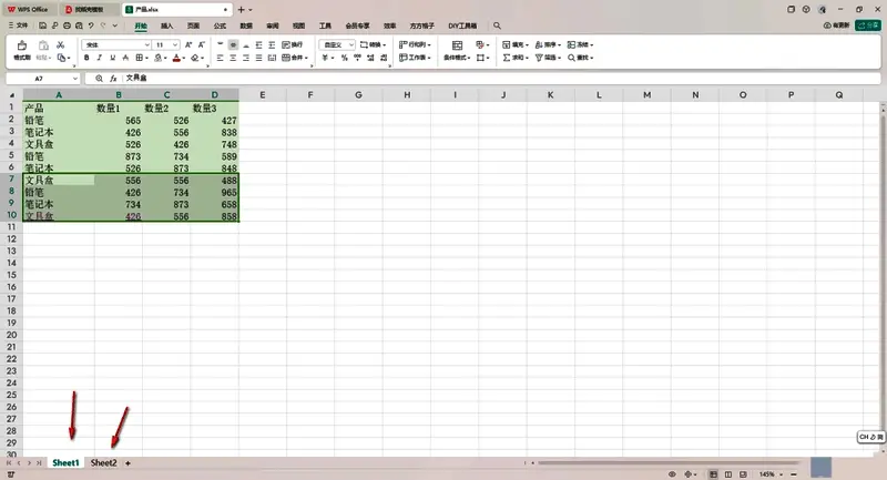 5、这时出现一个合并表页面,即可查看到我们的工作表合并在一起了。