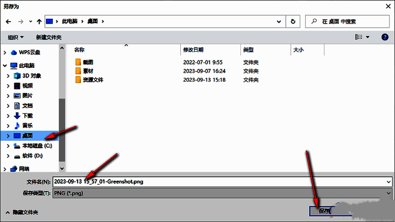 4.如果你选择【另存为】,会出现一个保存对话框。在这里,你可以指定截图的保存路径,并点击【保存】按钮。